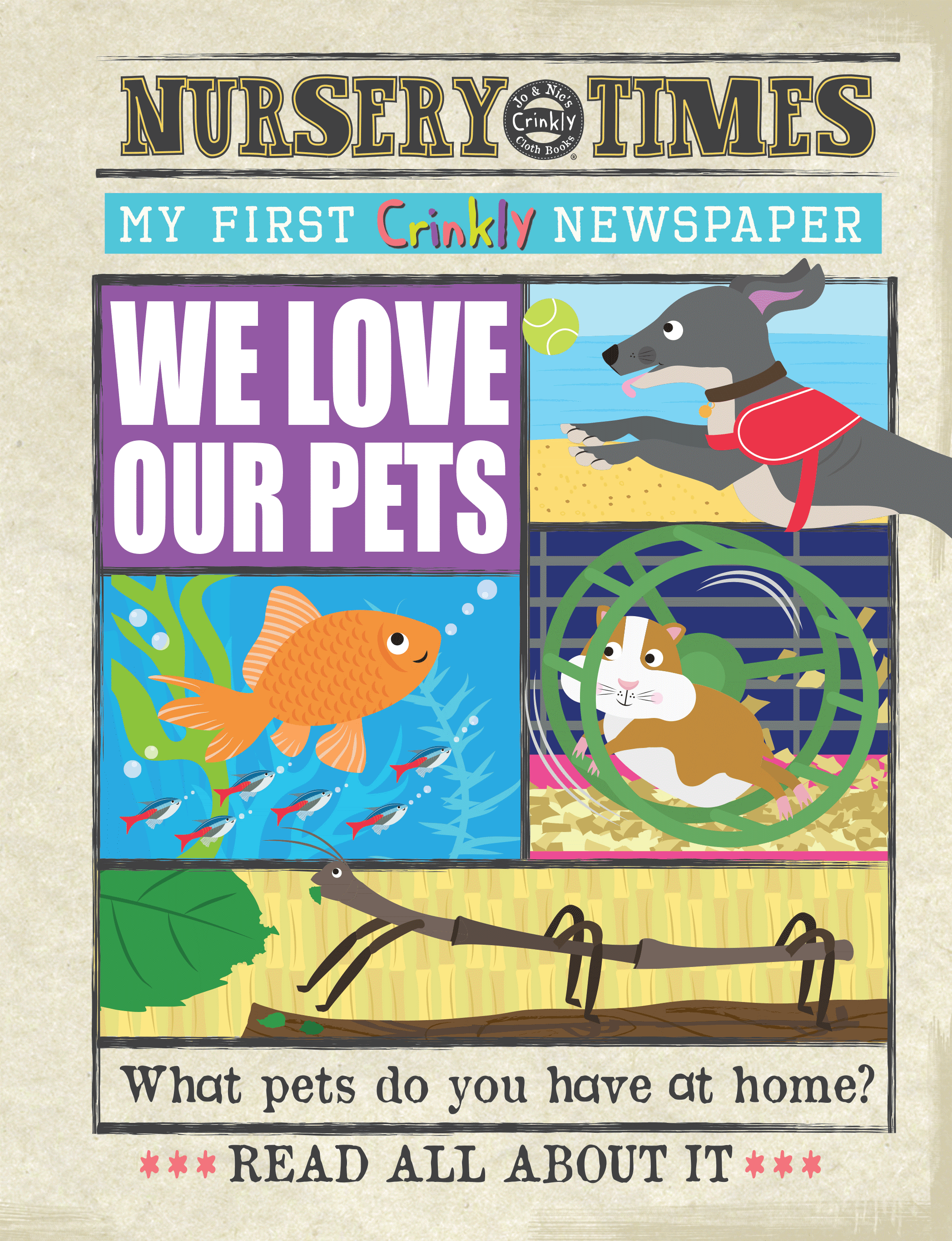 Nursery Times Crinkly Newspaper - We Love Our Pets