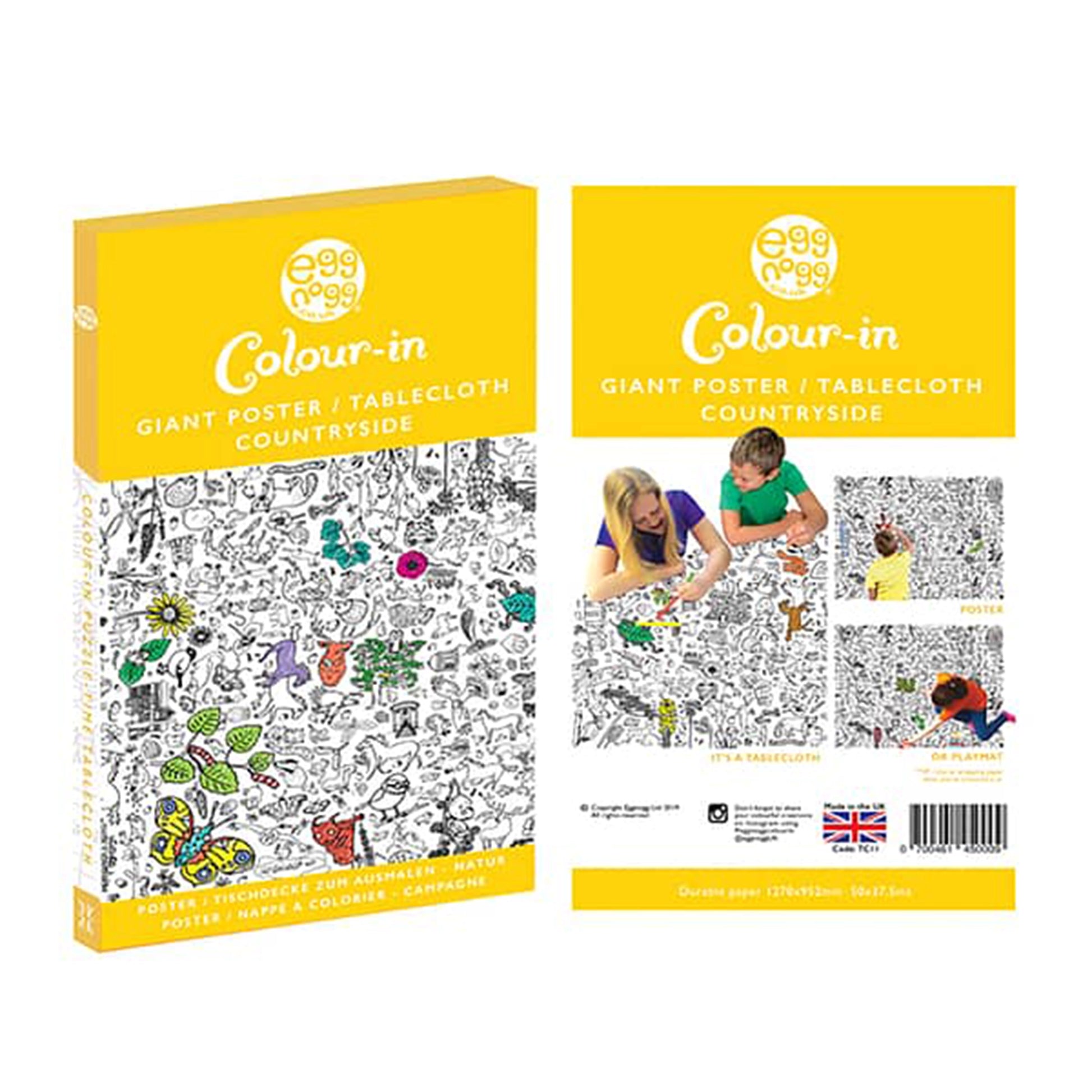The Eggnogg Colour-in Countryside giant poster / tablecloth is a fun-filled colouring-in craft activity for all ages and all occasions. It’s ideal for children’s parties, as well as weddings and other celebrations, holidays, rainy days and playtime anytime, and the perfect antidote to all that screen time. Let Eggnogg Colour-in bring a little calm into the day – and if the kids are kept busy, the grown-ups can have some down time and enjoy colouring-in therapy too!