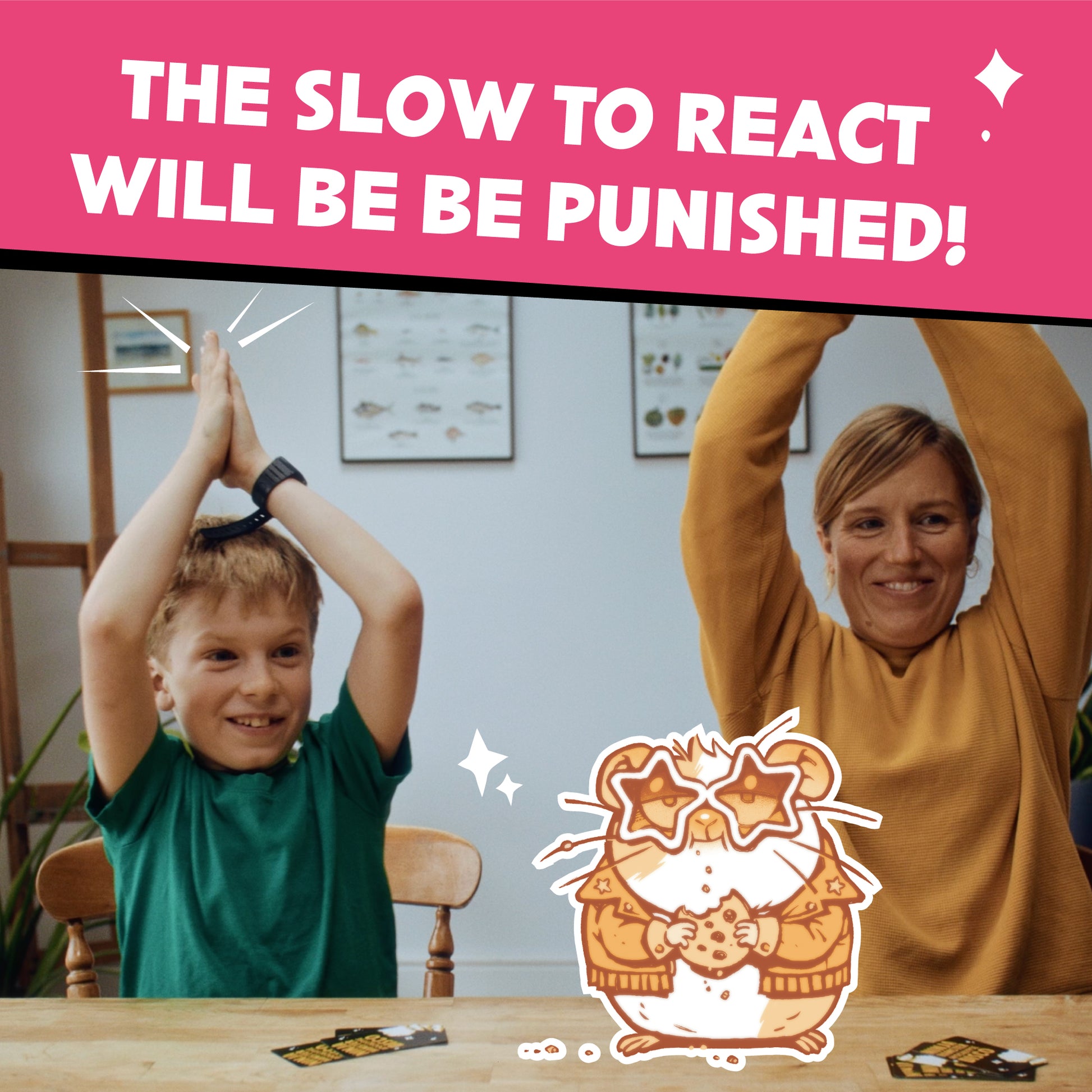 Super quick to learn and irresistibly entertaining, Ninja Hamster Apocalypse Disco is a sure-fire hit for a family gathering, a games night with friends or a quiet night in with your hamster accomplices.