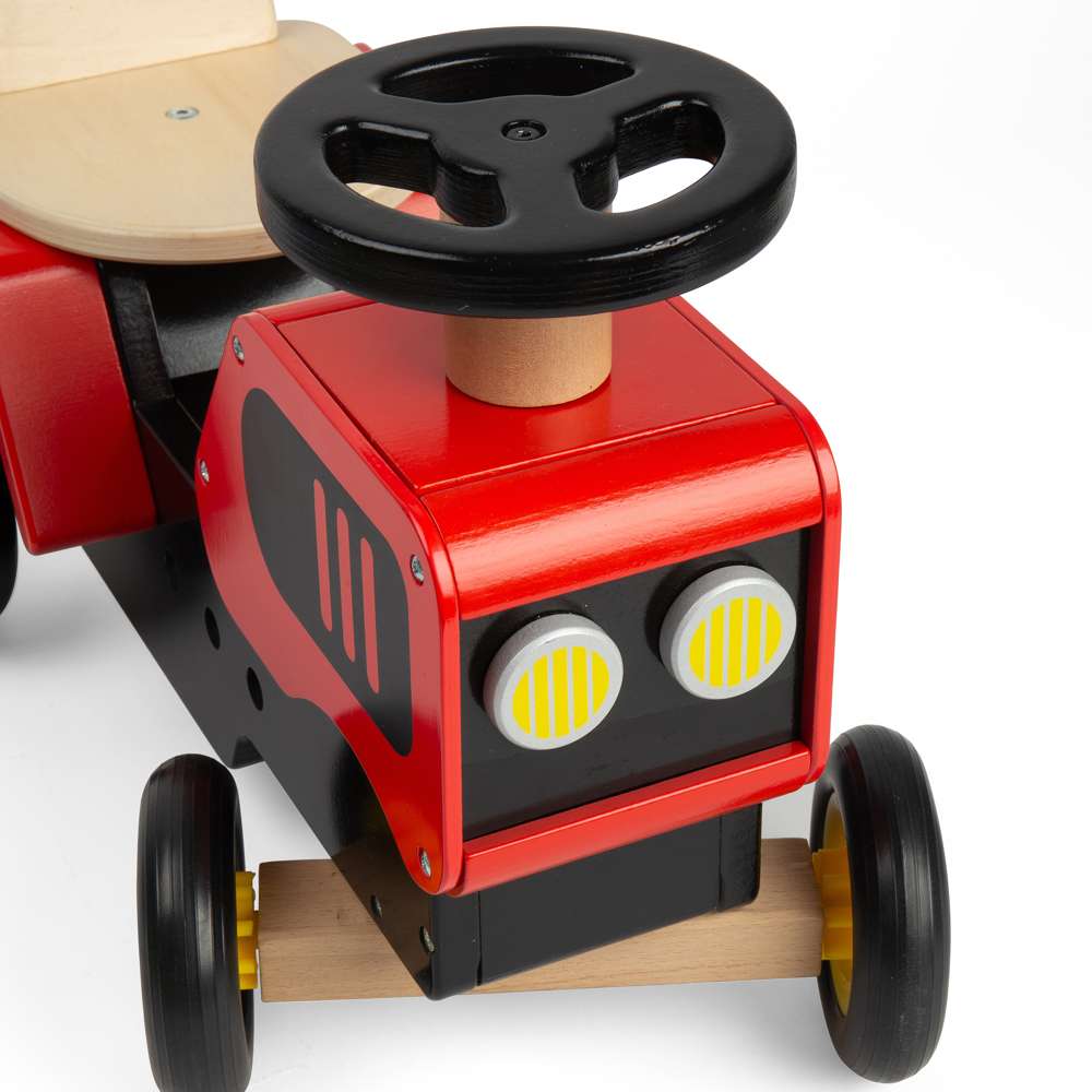 Our tractor ride on is made from sustainably sourced FSCĀ® Certified wood and coloured with non-toxic paints and lacquers. Conforms to current European safety standards. 33.5cm H x 25cm W x 48cm D. Suitable for 12+ months.
